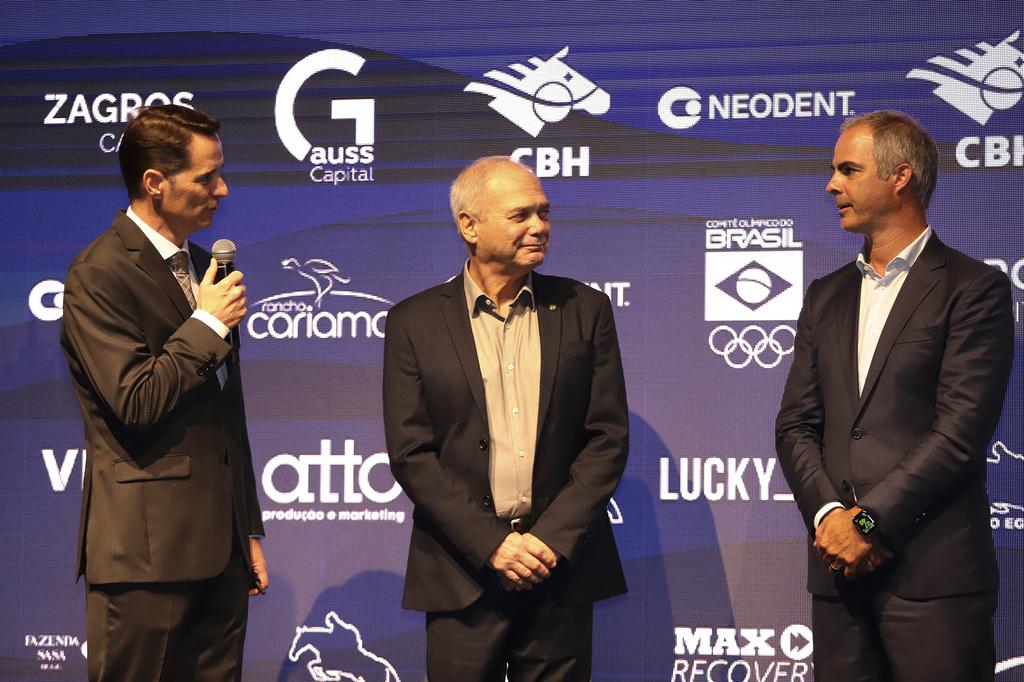 São Paulo, São Paulo 10 de Abril de 2024 – A noite da quarta-feira foi especial com o Prêmio Hipismo Brasil 2023, no Clube Hípico de Santo Amaro (SP), condecorando os campeões de sete modalidades chanceladas pela Confederação Brasileira de Hipismo (CBH) na temporada do ano passado, além de diversas homenagens aos medalhistas pan-americanos e o lançamento do Hall CBH da Fama. Em seu primeiro pronunicamento, o anfitrião Fernando Sperb, presidente da CBH, deu as boas-vindas a todos e logo anunciou a grande atração da noite: a premiere do documentário – Baloubet: Drama e Glória de um Gladiador – produzido pelo Comitê Olímpico Brasileiro. Juntos, Fernando Sperb, Paulo Wanderley, presidente do COB, e o campeão olímpico Rodrigo Pessoa, falaram da importância do documentário em memória ao cavalo mais famoso de todos os tempos.