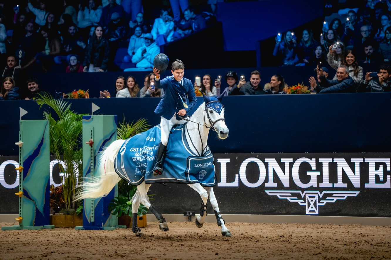 São Paulo, São Paulo – 25 de Agosto, 2024 – Nesse domingo, 25/8, o Grande Prêmio Longines Troféu Jayme Loureiro Filho encerrou o Internacional de Salto – Longines São Paulo Horse Show CSI 4*-W, o 34º Indoor na Sociedade Hípica Paulista (SHP), principal concurso em recinto fechado e mais concorrido da América do Sul. Sagrou-se campeão Pedro Távora de Matos (BRA) com LWC Ashley, Brasileira de Hipismo de 14 anos, com duplo zero, em 50s07, ingressando no hall dos campeões do mais cobiçado GP do ano com 1 milhão de reais em jogo.