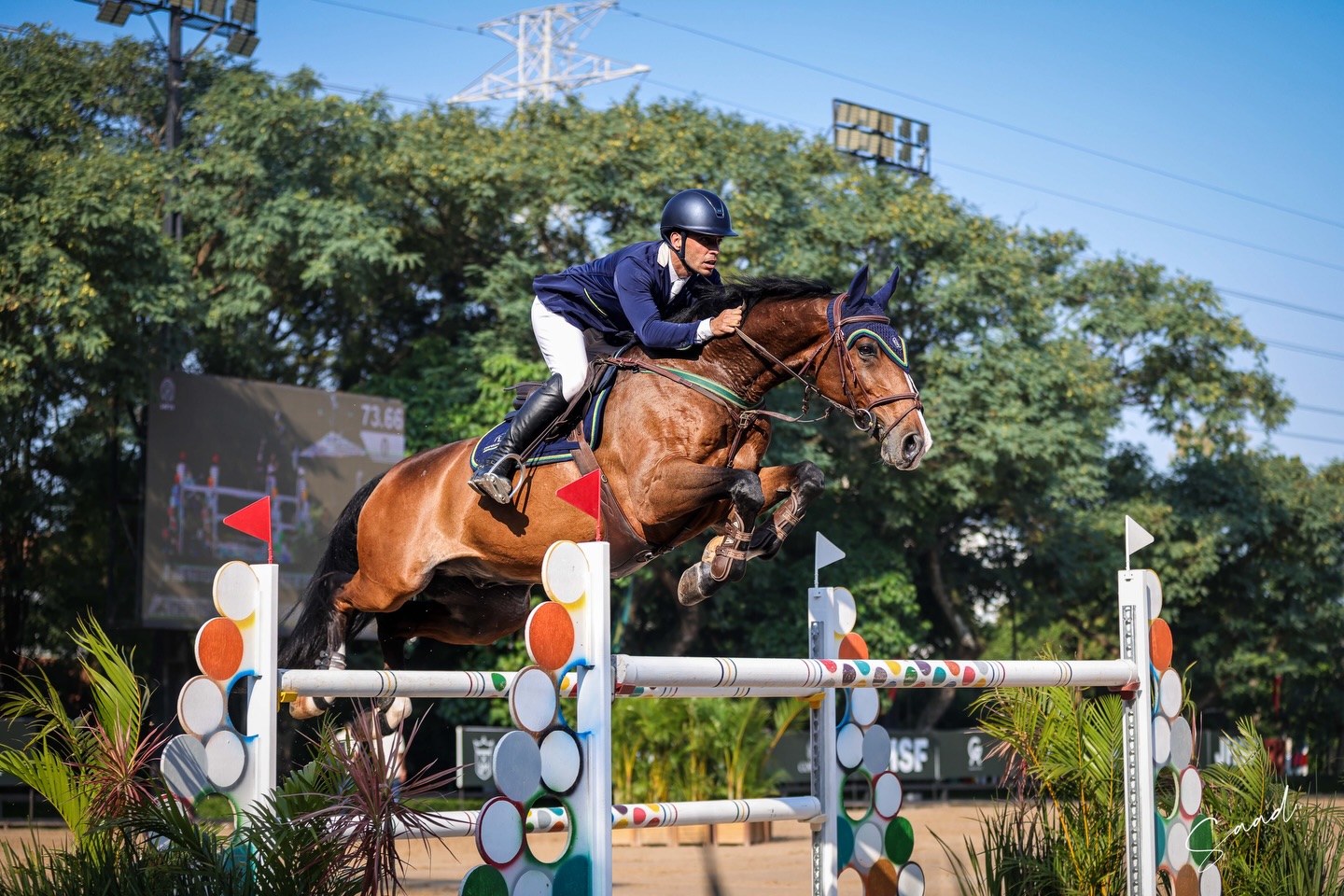 Rio de Janeiro, Rio de Janeiro – 07 de Novembro, 2024 – Confirmando a boa forma, o brasiliense Flávio Grillo Araújo, líder do ranking brasileiro Senior Top 2024, levou seu Lorentino JMen, seu parceiro de longa data, à vitória na qualificativa do GP no Nacional de Saltos 5* Villagemall na quinta-feira, 11/07, na Sociedade Hípica Brasileira, no Rio.